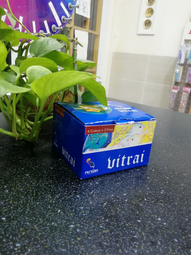 حجم هر بطری: ۴۰ میلیلیتر بسته ۹ عددی شامل: - ۶ رنگ: قرمز، مشکی، زرد، آبی، سفید، سبز - ۲ عدد حلال - ۱ عدد بدون رنگ قابل استفاده بر روی: - شیشه - سفال - کاشی و سرامیک مناسب برای هنرمندان و مبتدیان بدون نیاز به پخت و حرارتدهی قابل اشتعال