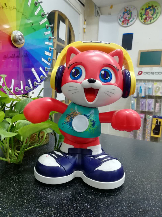 گربه رقصنده هولی تویز یک عروسک رقصنده و موزیکال برای کودکان بالای 18 ماه می باشد که حالت شاد و موریکال این اسباب بازی کودک را به وجد می آورد، این گربه موزیکال از جنس پلاستیک با کیفیت ABS ساخته شده از این رو، هیچ گونه ضرری برای فرزندان نوپا ندارد. این محصول دارای افکت نوری از جمله چشمان براق و گردنبند چراغ دار است. این اسباب بازی کودکان را به راه رفتن و تکلم سوق می دهد. دسته حمل بر روی آن وجود دارد تا به راحتی حمل و نقل شود. بر روی سر گربه 3 کلید جهت تغییر حالت های گوناگون قرار دارد. این گربه هنگام رقص بازوهایش را می چرخاند و باسن و سر خود را متناسب با ریتم موزیک تکان می دهد.